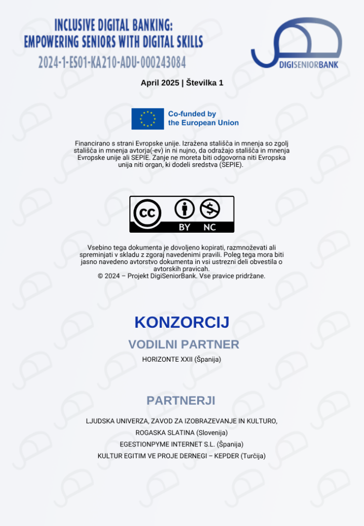 Inclusive Digital Banking: Empowering Seniors with Digital Skills je Erasmus + projekt, namenjen premostitvi digitalnega razkoraka za starejše. Naše poslanstvo je opolnomočenje starejših z digitalnimi veščinami ter spodbujanje finančne in družbene vključenosti v digitalni dobi.